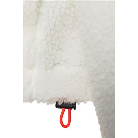 Heavy fleece with recycled nylon shoulders, sleeve cuffs and snap over placket. Rubber label at upper center back. Elastic for sleeve hems.