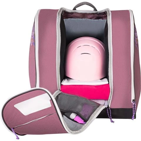 Front loader lightweight ski boot bag backpack for alpine ski boots, helmet and gear. Jumbo Pocket provides full visibility into the bag for easy packing and quick retrieval of ski gear.