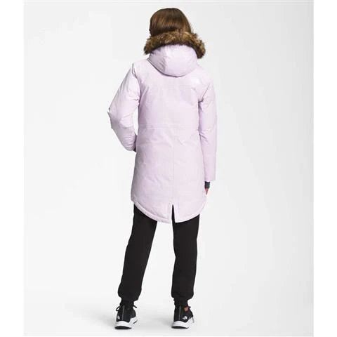 body: 70D 128 g/m² DryVent™ 2L—100% recycled nylon with non-PFC durable water-repellent (non-PFC DWR) finishupper-body lining: 75D 72% polyester, 28% recycled polyester high-pile fleecelower-body lining: 50D 76 g/m² 100% recycled polyester with non-PFC DWR finishfaux-fur trim: 70% acrylic, 17% polyester, 13% modacrylicdown insulation: 600 fill goose down in body; certified to the Responsible Down Standard (RDS) by Control Unionsynthetic insulation: 200 g Heatseeker™ Eco 70% post-consumer recycled polyester in hoodWaterproof, breathable, seam-sealed DryVent™ 2L shell with a non-PFC DWR finish helps keep them dryBody made with recycled nylon600 fill goose down in the bodyAttached, fleece-lined, three-piece hood with an elasticated rain-guard tunnel for a snug fit and removable faux-fur trimTwo-way, VISLON® center front zip with a hook-and-loop flap closureEncased cinch-cord at waist for adjustabilitySecure-zip hand pocketsInternal stretch cuffs with thumbholesFishtail hemID labelEmbroidered logo on left chest and back-right shoulderCenter Back: 32.75″
